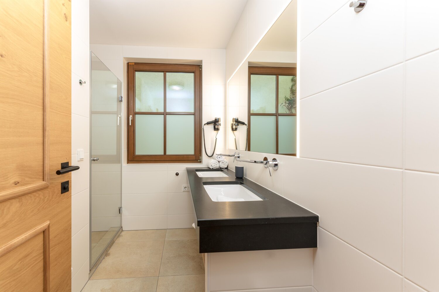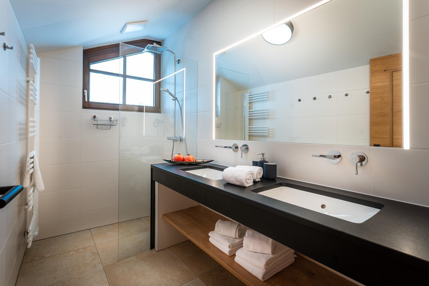 • 1 Bad mit Dusche, Doppelwaschtisch und Fön