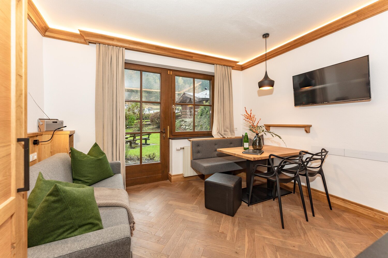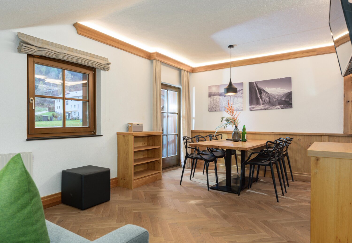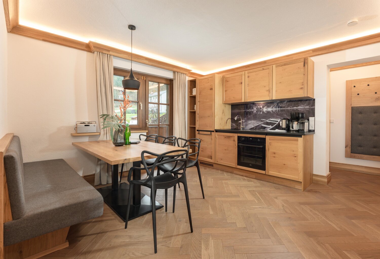 Die fünf modernen Appartements sind stilvoll mit natürlichen Materialien eingerichtet und schaffen eine Atmosphäre, in der man sich sofort zuhause fühlt. Der große Gemeinschaftsgarten, die Terrasse und der Wintergarten laden zum Verweilen ein – perfekt für Gruppen oder Familien. Nach einem aktiven Tag erwartet Sie der Wellnessbereich mit Sauna und Ruheraum zur Erholung.