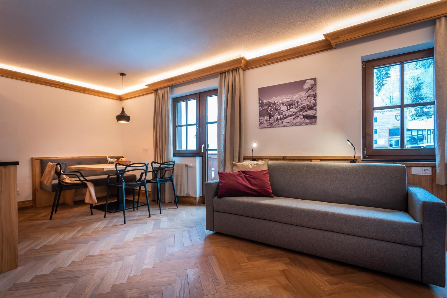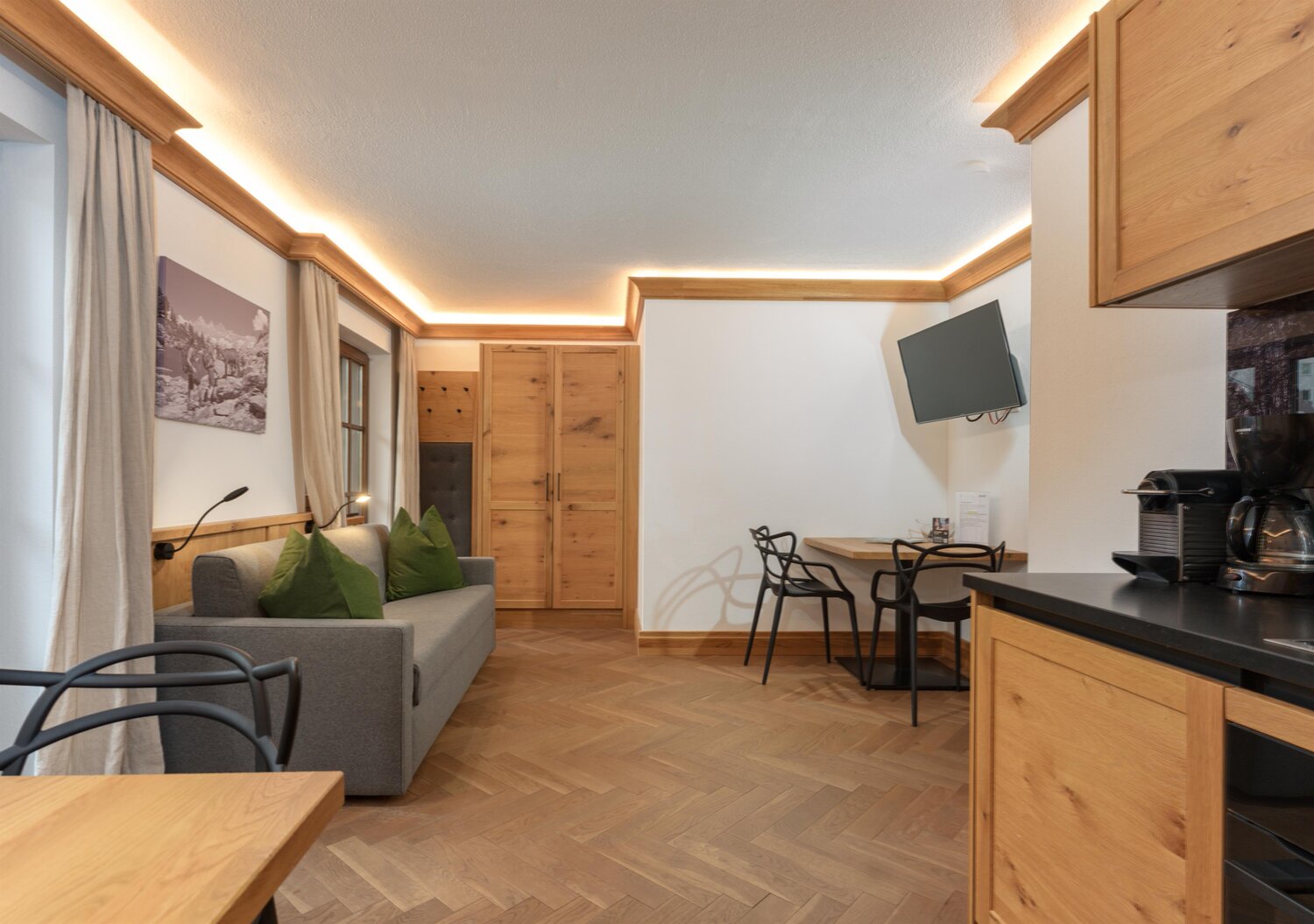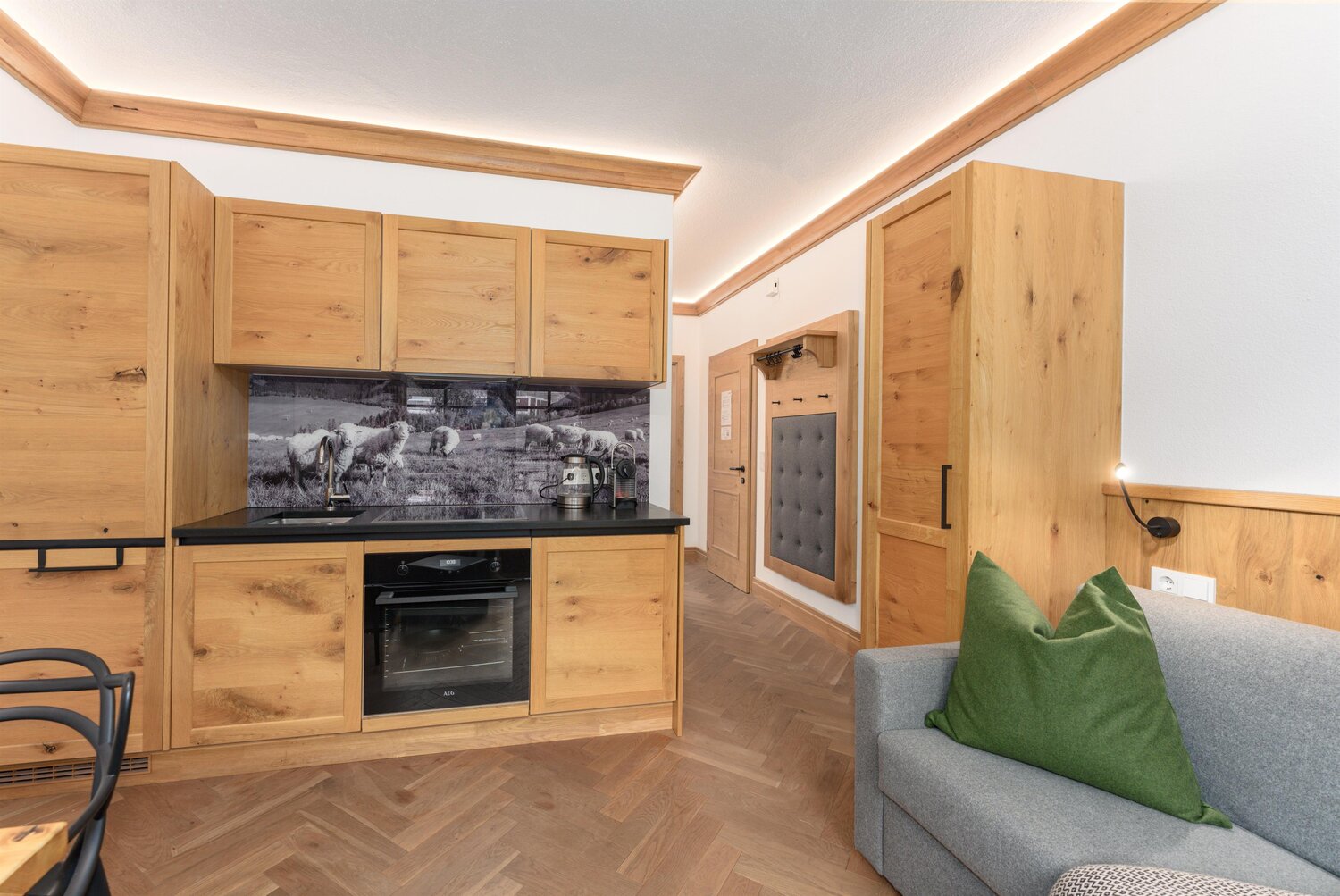 Die fünf modernen Appartements sind stilvoll mit natürlichen Materialien eingerichtet und schaffen eine Atmosphäre, in der man sich sofort zuhause fühlt. Der große Gemeinschaftsgarten, die Terrasse und der Wintergarten laden zum Verweilen ein – perfekt für Gruppen oder Familien. Nach einem aktiven Tag erwartet Sie der Wellnessbereich mit Sauna und Ruheraum zur Erholung.