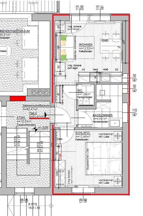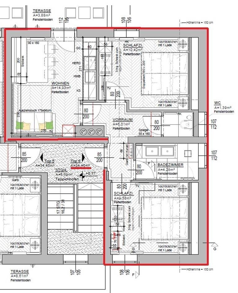 Für 4 - 6 Personen, 56m² Wohnfläche, 2. OG