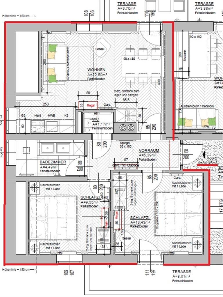 • Untergeschoss befindet sich eine Sauna zur freien Benützung