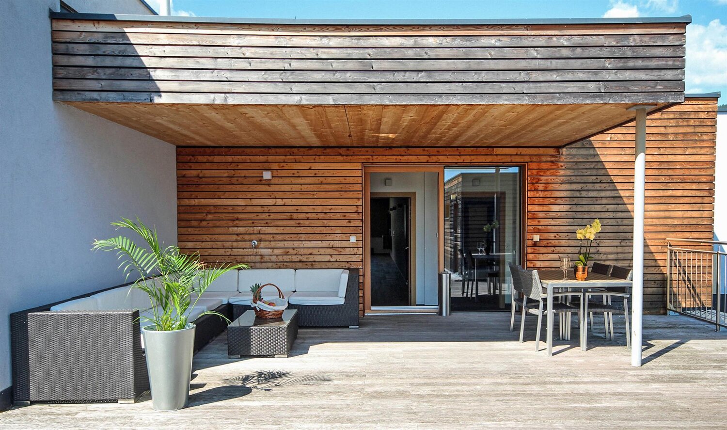 Holz, Stein und reduziertes Design schaffen ein harmonisches Wohngefühl – ideal für Familien oder Freundesgruppen, die Wert auf Raum, Qualität und bewusste Erholung legen.