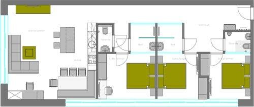 • 3 Schlafzimmer mit jeweils einem Doppelbett