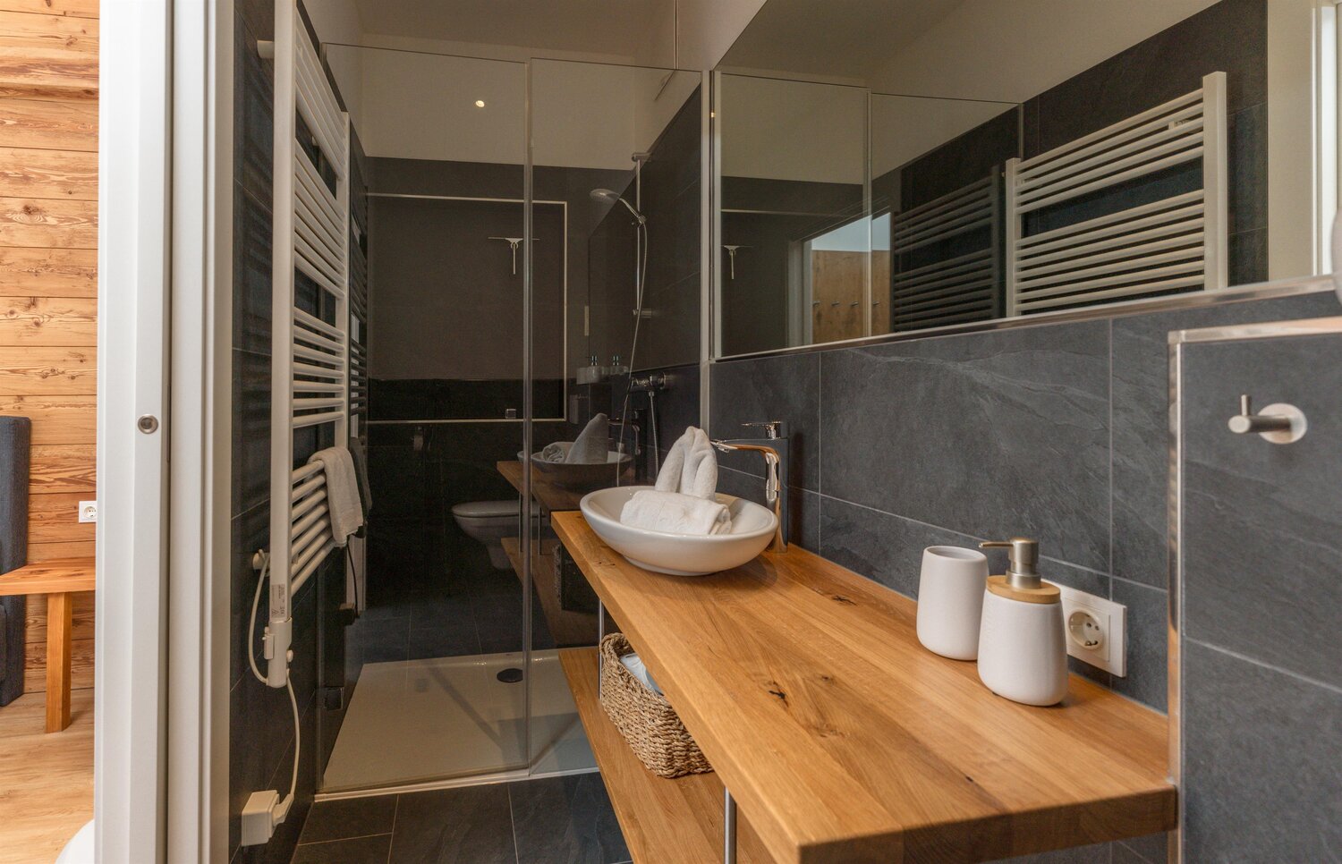 Zwei modern ausgestattete Ferienwohnungen bieten alpinen Stil mit Wohlfühlcharakter. Heimische Materialien, viel Licht und klare Linien schaffen ein gemütliches Ambiente. Das Appartement Top 1 verfügt über eine eigene Terrasse mit kleinem Garten und Ausblick auf die umliegende Bergwelt.
