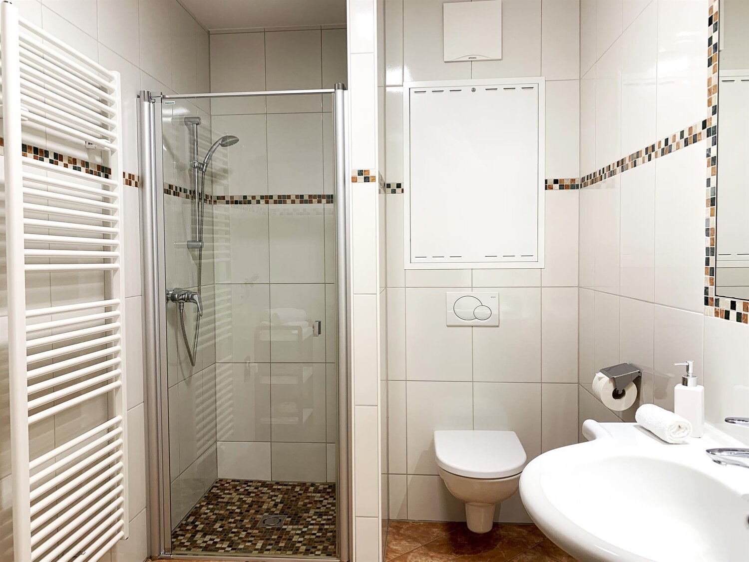 • 1 bathroom with shower, washbasin and WC