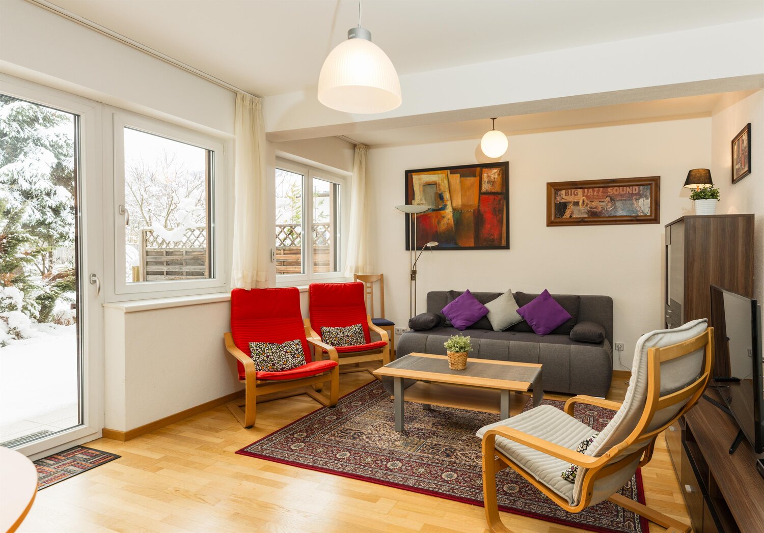 Inside, you won’t find the usual standard, but personal style with clean lines. Three apartments – all furnished to a high standard – offer plenty of space to simply be. Whether with a terrace upstairs or direct garden access – here you live openly, bright, and with a keen sense for atmosphere. The penthouse even features an infrared sauna for relaxing evenings with mountain views.